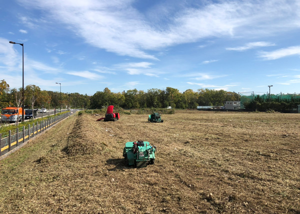 大型機械を使用した広大な緑地帯の管理業務の一例をご覧ください!